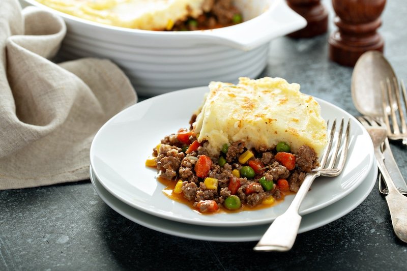 Shepherd’s pie is traditionally made with ground lamb. However, this version, also known as a “Cottage Pie,” is prepared with ground beef instead.