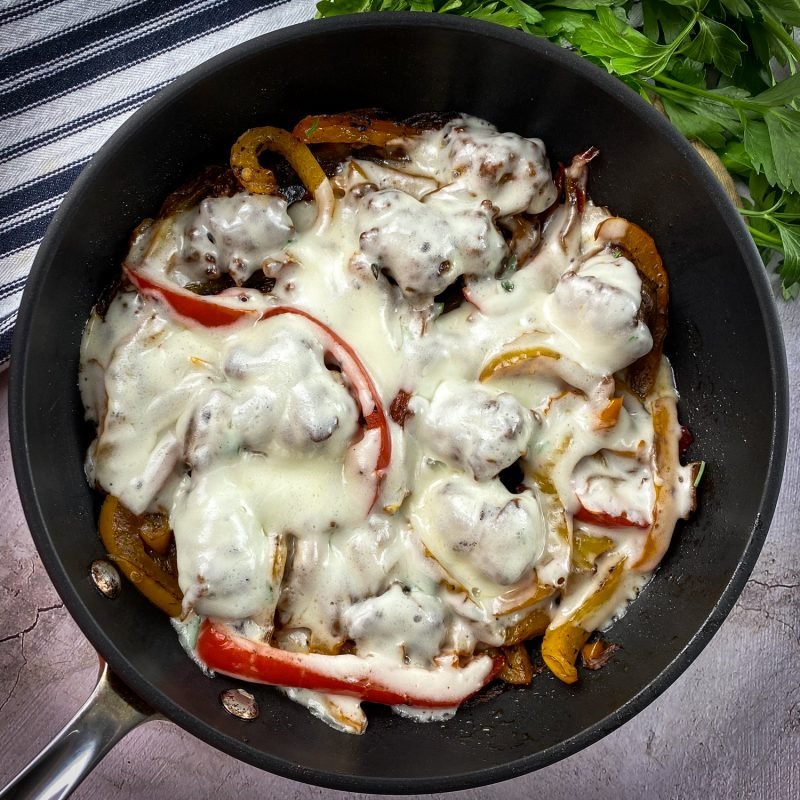 This hearty one-skillet wonder is ready in no time, combining the comforting flavors of sausage and peppers with the rich indulgence of melted cheese. It’s a perfect dish for sharing with friends or family, or enjoying as a cozy solo meal. Serve it with crusty bread for dipping in the delicious sauce, or alongside a fresh salad for a balanced meal.