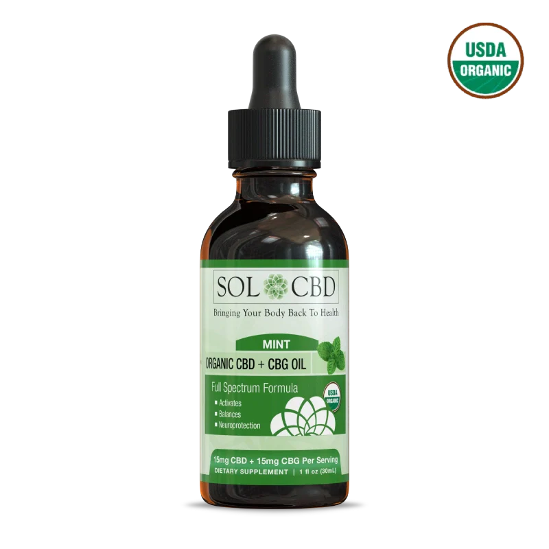 Introducing Sol CBD’s Organic CBG + CBD Oil Tincture in a refreshing Mint flavor. This premium wellness product combines the powerful benefits of two potent cannabinoids, cannabidiol (CBD) and cannabidiol (CBG), in a convenient and delicious form.