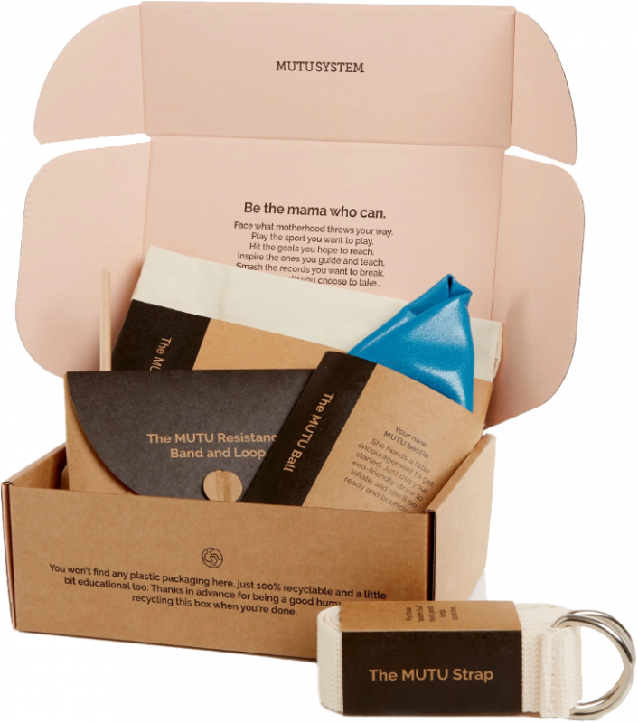 MUTU is a brand dedicated to helping moms regain core strength and pelvic floor function after childbirth. Their flagship product, the MUTU Kit Box, provides all the essential tools needed to follow the MUTU System program. This includes resistance bands, a small inflatable ball, and a yoga strap, all designed to aid in the exercises. The kit arrives in eco-friendly packaging, reflecting MUTU’s commitment to sustainability.