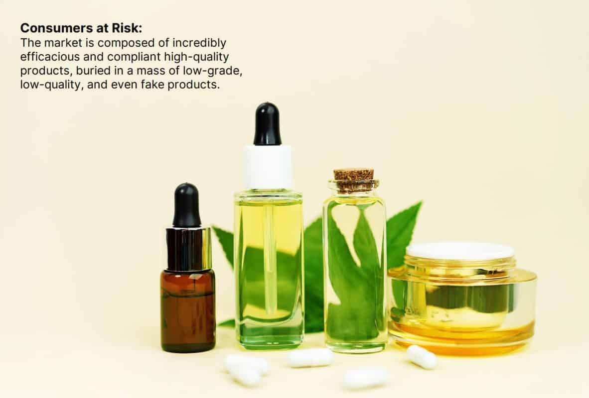 As with any market without stringent FDA regulations and policing, the marketplace becomes a free for all. It is composed of incredibly efficacious and compliant high-quality products, buried in a mass of low-grade, low-quality, and even fake products. This seriously places consumers at risk, knowing that most consumers buy their CBD products either based on nicely designed labels, a referral from friends and family, simply based on price, or believe claims from marketing promotions.